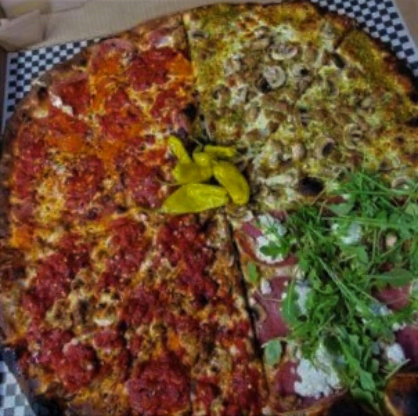 The Original PieSlingers Full Moon XXL 20” NY Style Pizza available in 6-8-12 slices or cross cut. Available at both locations. Bruno’s in the Santa Fe Railyard District, and Punchy’Z Rio Rancho & Abq.